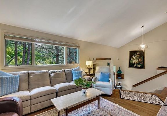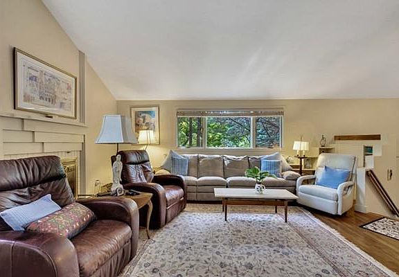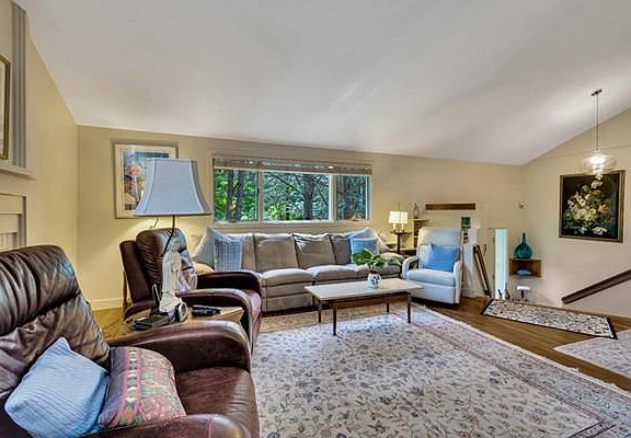 Perfect for an extended family and offers single level living! The sunny main floor has soaring cathedral ceilings and large windows and with an open concept living/dining/kitchen/den and two ensuite bedrooms (one with jet tub, skylight and makeup area) - both have many closets. Completing the main floor is a powder room which also contains a full size washer and dryer. The entire interior was redone in 2001 with an all new kitchen/den/deck completed in 2016. The modern kitchen offers custom 2-way cabinets, top of the line appliances, a breakfast bar/work area, warming oven and a wet bar and much more! The first floor has two additional bedrooms,one with its own exit, a large full bath, tiled floors, multiple storage spaces and access to a massive garage with additional storage. Easy access to major roads, shopping, schools and public transportation all combine to make this home a truly special place. across from conservation land and on a dead end street this home has everything