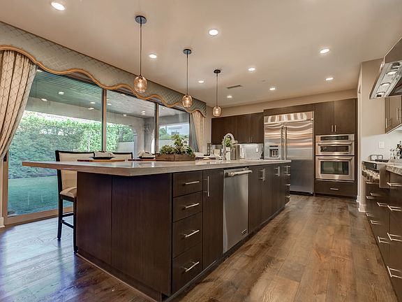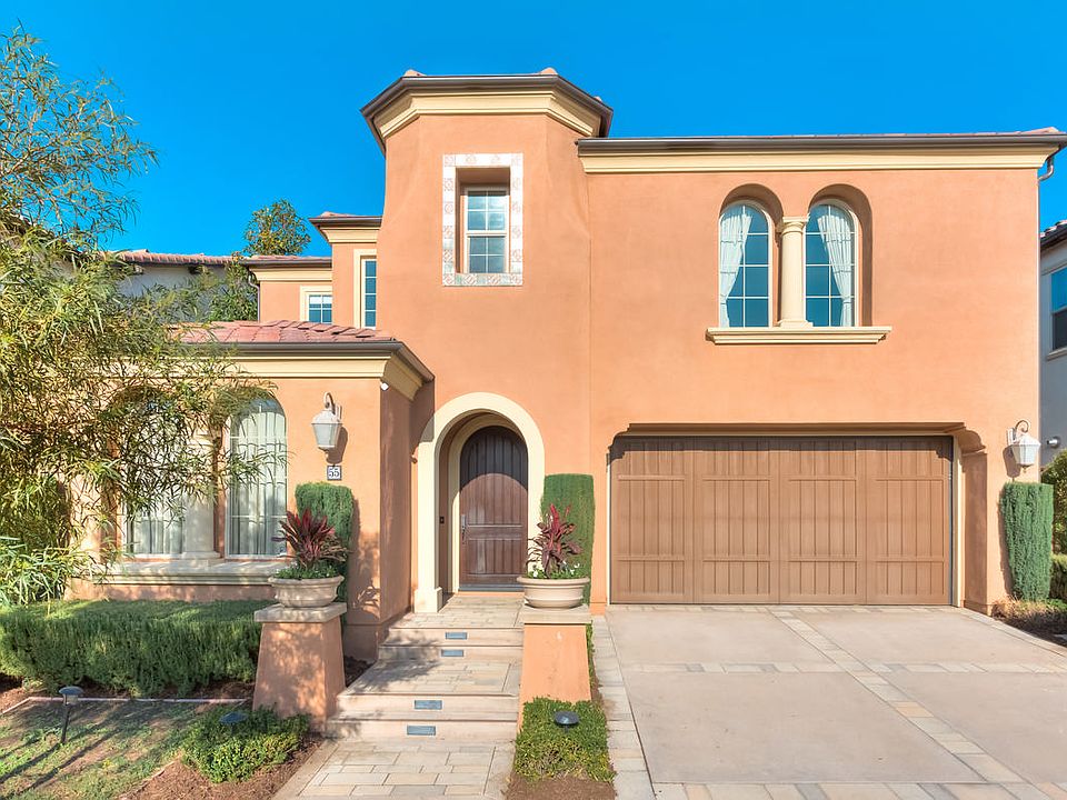Former model home, with approximately $400K in amazing builder upgrades. This dream home is nestled in a quiet cul-de-sac street, is being rented furnished, and is located in the very desirable community of Stonegate. The classic, yet contemporary, warm and welcoming floor plan invites a sophisticated relaxed lifestyle. Seamless CA indoor/outdoor living and entertaining is a simple transition through the folding glass doors, allowing family and friends to enjoy not only your highly elevated home, but the amazing professionally designed outdoor area (with built in BBQ). Enjoy very low electric bills due to amazing solar pannels. The formal dining and great rooms enjoy state of the art sound systems. The chefs dream kitchen has a enormous quartz island, complete with huge counter eating area, and unsurpassed stainless gourmet appliances (Jenn-Air built-in refrigerator/freezer, freestanding gas 6 burner range with pot filler, second oven, microwave, and is equipped with a second professional chef prep kitchen with Gagganau steamer, wok burner, and two additional KitchenAide drawer refrigerators). This kitchen will rival any 5 star restaurant. Dont miss the wine room, with refrigerator, off the dining room. There are 4 ensuite bedrooms (one located downstairs with walk-in shower). Additional upgrades upstairs include a spectacular bonus/theater room. Stunning master suite, and bath, with separate soaking tub and dual head shower. Just a short walk to the park, and convenient access to the 133, 405 & 5 freeways and some of the best shopping, restaurants & beaches So CA has to offer.