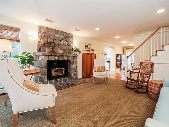 Location and charm enhance this traditional light filled Bonnet Shores home. Desirable location affords water views from the front yard and master bedroom. Enjoy the distant Newport Bridge lights in the evening! Home has a convenient layout with oversize living room opening to a spacious dining room with hardwoods that provides ample space to gather family and friends. The sun filled kitchen has plentiful counter space, stainless steel appliances, a skylight, hardwood floors and a full view door to deck. The deck can also be accessed from a slider in the dining room which is wonderful for warm weather entertaining. A beautiful stone fireplace with recessed wood stove graces the living room. Two first floor bedrooms with hardwoods and a full bath with a tub and shower complete the first floor. The large master bedroom with private bath is on the second floor along with a huge family room which has banks of windows on two walls. This space is extremely versatile and has lovely wide plank pine floors. The home has vinyl siding, driveway with parking for 5 cars and a fenced yard for gardens, pets and family fun. This property has been well cared for and maintained as a primary residence for the past 24 years. Come enjoy all the amenities of Bonnet Shores which include a community boat ramp and mooring field down the street along with 2 beaches. Enjoy boating, kayaking and fishing in this attractive seaside neighborhood!