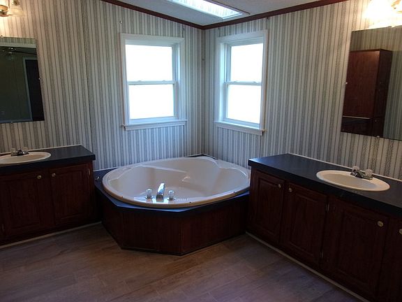 This is the McDaddy....plenty of room for the whole family...4 bedrooms and 3 full baths....and almost 5 acres. All new windows and new flooring...carpet, laminate and ceramic tile. The well and central heating and cooling was recently service. All new paint on the inside...exterior is vinyl siding...and a large new rear deck. 10X12 metal storage building with an enclosed lean to shelter is included. This property also has a separate septic tank. It's time to stop wasting your money in rent and buy a home of your own.