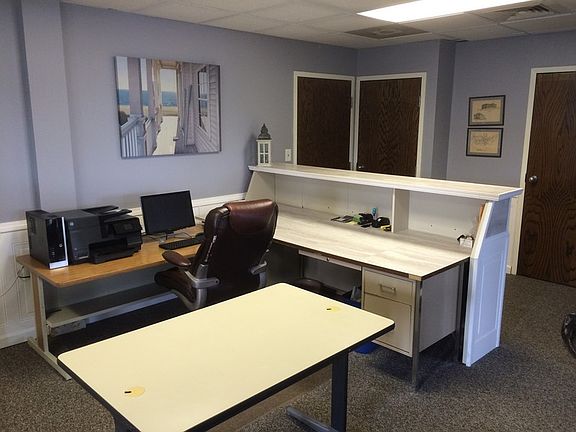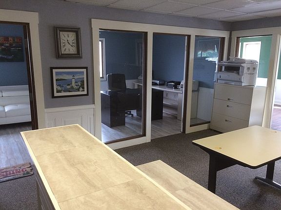 Office condominium available in the Plainville Business and Professional Center located in downtown Plainville. Built in 1985 with twelve units it is a secure building with an elevator and carpeted hallways. It is a top floor unit located in the front of the building with approximately 1100 square feet with a good size reception/office area off of which are two offices and a conference room as well as a half bath and kitchenette area. Flooring is laminate and commercial grade carpeting, with drop acoustic ceiling and fluorescent lighting. Each unit has their own heat pump system. The compressor, which is located on the roof, and air handler which provide heat and air conditioning was replaced in 2009.