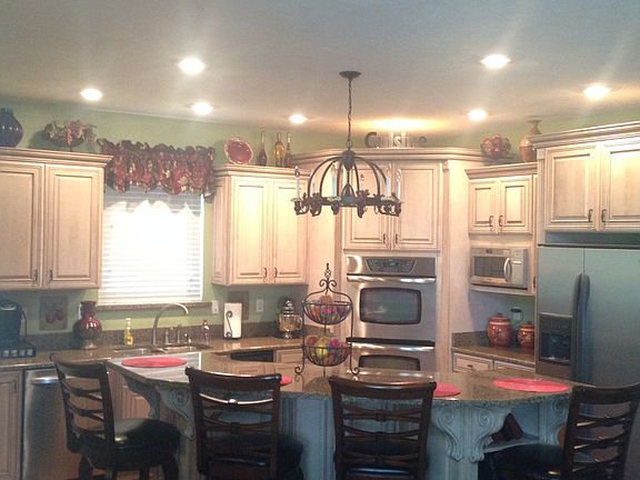 Custom built granite counter tops, stainless appliances, double staircase with wrought iron large deck with gas fire pit, oversize garage, large level lot,