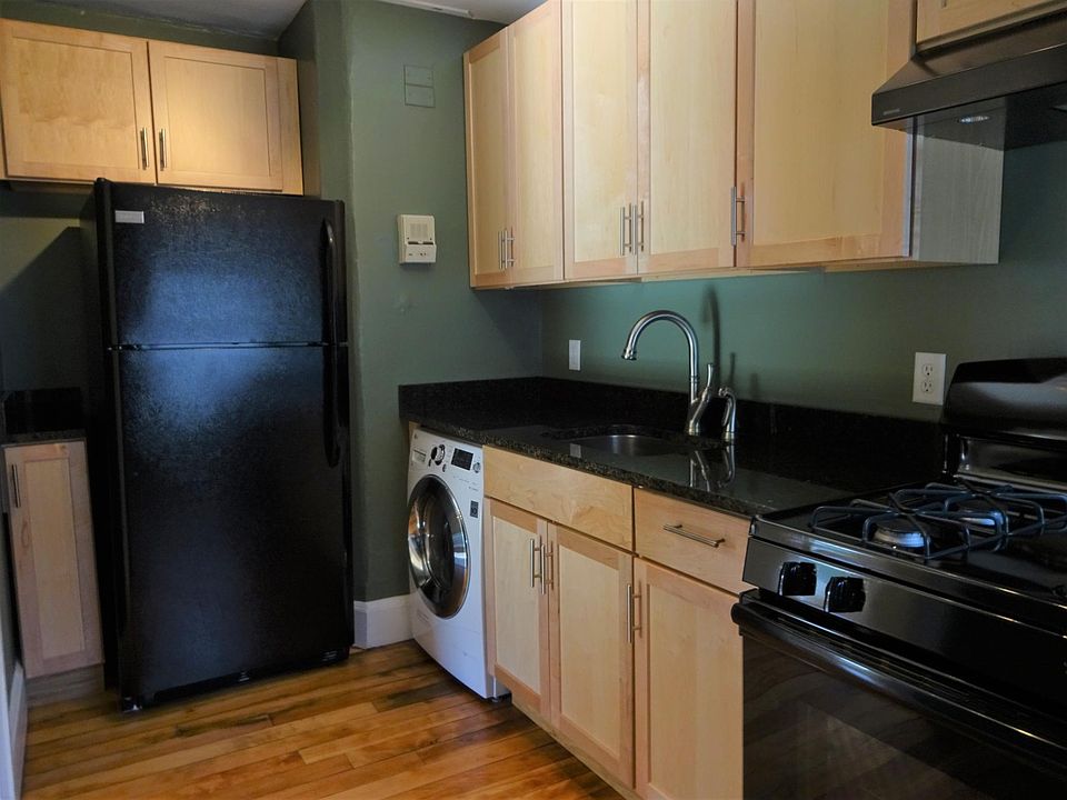 Newly renovated studio with sleeping nook located near USM and about a mile from downtown. New cabinets, granite counter tops and appliances including a gas stove, and a combo washer/dryer! Hardwood floors throughout have been re-finished. Bathroom has new fixtures and tile flooring. Sleeping nook is small (see floorplan) but includes some built-in storage and a pocket door separates it from the main living space. This top floor corner unit has lots of windows allowing for tons of sunlight. Building features a storage unit. Parking is on-street and is generally easy in the area. Studio + nook! Rent includes heat, hot water and cooking gas!