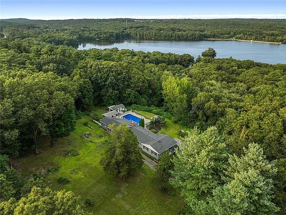 Enjoy serene, one level living at its finest in this spectacular 3,000 sq ft 4 bed, 3 and a half bath sprawling ranch, with winter water views of Stillwater Reservoir. Situated on an almost 6 acre lot in a private neighborhood on a dead end street, this gorgeous property is an entertainers dream, inside and out! Enter in through the foyer and you'll find a recently updated chef’s kitchen with custom cherry wood cabinets, a large kitchen island, GE Café Series stainless steel appliances, granite countertops, two wine fridges and a gas range with hood. An adjacent dining room with built in cabinets, wood stove and outdoor access leads you to a huge living room with gleaming hardwoods, exposed beams, pine walls and a wood burning fireplace. An office/gym, half bath and laundry room, along with 4 spacious bedrooms with lots of closest space and 2 full baths complete this functional one level layout with central air and hardwoods throughout. Walk down to a partially finished walkout basement with kitchenette, another wood burning fireplace, full bath and lots of possibilities! Step outside and enjoy a cup of coffee in your own private backyard oasis. Enjoy endless hours of relaxation and entertaining with a 20 x 40 ft in ground pool, outdoor kitchen, deck, six person hot tub and screened in pool house. Outdoor shed that fits a tractor, fenced in side yard for the dogs, two car garage. Walking distance to the 55 acre Smithfield Land Trust with nature trails. This home has it all!