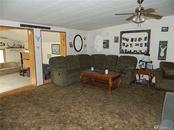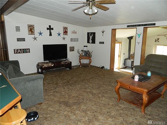 Beautiful single family home on approx. 6.02 acres. Country living only 5 mins. from town. 2 acres fenced pasture, 3 acres irrigated alfalfa. 3 bdrm 1 3/4 bath upgraded manufactured 1824sq. ft. home. Spacious floor plan with sunken family room comforted by free standing wood stove. Sliding glass door opens to 18x24 rhino board deck with view of Okanogan topography. Nicely landscaped yard includes lots of flowers, large lawn, horse shoe pits and pond with waterfall.