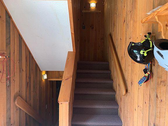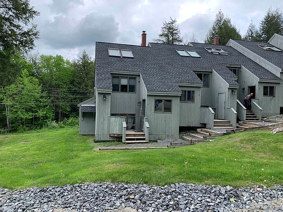 This is an end unit at Wintergreen, a small complex with only 12 units and great trail access. The Snowmobile trail is also just across the road. You have two bedrooms and a full bath in the basement, then on the main floor a 3/4-bath and very open living area with skylights over the kitchen, and wood stove on a brick hearth in the living room where there are sliders to a deck. On the second level is a loft bedroom. Enjoy mountain activities year-round. Just minutes to the village where there are shops and ample dining options.
