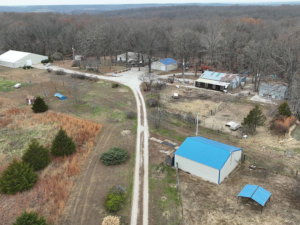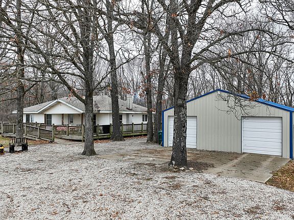 Discover this cozy 1,540 sf home on a sprawling 139-acre property in Long Lane, MO, offering the perfect blend of cleared and wooded land. This property is a dream for hunters, hobbyists, farmers, or anyone seeking privacy and space, with 6 large outbuildings to suit all of your needs. The home is located very close to a 60x60 foam insulated shop, 30x40 shop with an attached garden house and lean-to, 30x30 2-car detached garage with extra storage space, 30x30 foam insulated shop, 20x25 outbuilding, plus a separate 30x30 shop is located on the additional acreage.The wheelchair-accessible home boasts 3 spacious bedrooms, 2 full baths, and an open floor plan connecting the kitchen, dining, and living areas. The kitchen is a chef's delight, featuring an expansive island with a Viking propane cooktop and griddle, double convection Viking ovens, an island hood with pot hooks, dishwasher, refrigerator, and abundant counter space. Storage abounds in this home with oversized bedroom closets and 2 bonus linen closets. The comforting heat of the wood stove feels perfect on a cold winter night! Enjoy the serene surroundings from the full wrap-around deck, perfect for grilling, relaxing, or taking in the views of your property. The hot water heater was replaced in July 2024. The property features a large pond, wet weather creek, trails and 6 water hydrants.