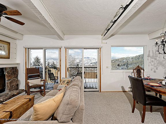 This beautiful 2 bedroom, 2 bath condo is turn-key with unobstructed views looking across Snowmass towards the Continental Divide. A perfectly situated end unit, with extra windows maximize the surrounding views, with comfortable finishes throughout. BBQ year round on the patio over-looking the nature trail, this south facing unit enjoys an in-unit washer/dryer, upgraded fireplace, and perfectly situated living spaces. Low HOA dues with easy access to the Snowmass Village Shuttle, & Private Parking. Amenities include a heated pool, outdoor hot tub, fitness center, sauna, locker rooms, and a Party/meeting room.