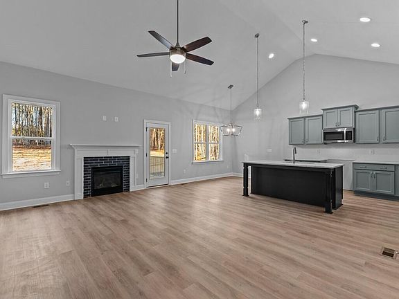 CUSTOM BUILT by Local Builder Blackwell Builders! Gallery Entrance w/1st Floor Owner's & Guest Suite! Luxury HWD Style Flooring Through Main Living! Vaulted Kit: ''White Galaxy'' Granite Ctops, Cstm Painted Cabinets, Herringbone Laid Tile Backsplash, SS Appls Package, Furniture Style Island w/Breakfast Bar, Glass Dome Pendant Lights & Recessed Lights! Open to Spacious Dining w/Access to Rear Covered Porch! Owner's Suite: w/Accent Tray Ceiling & HWDs! Owner's Bath: Designer Tile Flooring, Dual Vanity w/White Quartz, Tile Srrnd Shower w/Bench & Transom & Large WIC! Fam Rm: Vaulted Ceiling & Tile Srrnd Gas Log Fireplace w/Mantle! Huge 2nd Floor Rec Room Or Teen Suite w/Full Bath & Sep Walk in Storage Area!