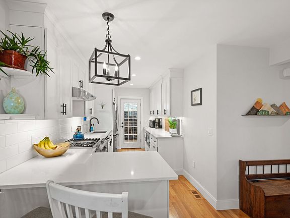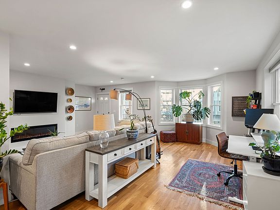 June Rental. Sun filled 2 bed / 2 bath with private outdoor space & 2 garage parking! This well-designed home offers an open floor plan and hardwood floors throughout. The spacious living room includes a large bay window and linear gas fireplace. The dining area is located off the large contemporary kitchen that features, gas cooking, a breakfast bar, and has direct access to the private patio. Both bedrooms are large and have generous closet space. The primary has an en-suite bathroom, blackout shades, and overlooks the patio. In-unit laundry, central A/C, and copious storage complete this beautiful home. Located on a quiet dead-end street, the Arnold Arboretum, commuter rail / orange line and the many shops and restaurants of JP are just a short walk away. 12-15 month lease required with an option to renew. Cable, gas and electricity to be paid by tenant. Fees: 1st month, last month, security, & broker fee (equal to one month's rent).
