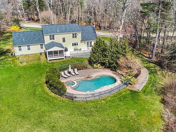 Nestled on over two acres of lush land, this beautiful 3 bedroom, 2.5 bath home boasts an enticing blend of comfort, taste, and outdoor allure. The main floor, with refinished hardwood floors throughout, offers a spacious kitchen, complete with upgraded appliances, transitions into the family room with wood burning fireplace and a light filled dining area. For those seeking relaxation and tranquility, enter onto the expansive deck, ideal for outdoor entertaining or the screened porch which offers a serene retreat overlooking the sprawling backyard and in-ground heated salt water pool! The large primary bedroom with full bath, formal living room with fireplace, dining room and den/office round out the first floor. The second floor provides two generously sized bedrooms with spacious closets and a recently updated full bathroom! Whether you are looking for a serene retreat or haven for hosting gatherings, this home offers the perfect blend of comfort, convenience and natural beauty.