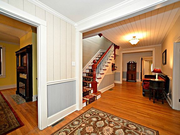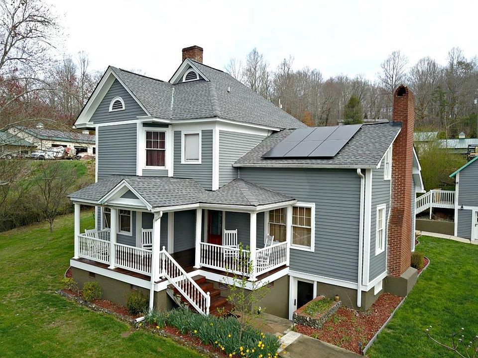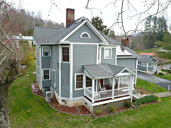 Sylva NC-Historic House (Built in 1919). 4 Bedroom 3.5 Bath Home with recent remodel/upgrade to include: new roof (with solar system), new siding, new heat a/c system, insulation, plumbing and electrical upgrade. Other features include option of master bedroom on main level (with walk-in tiled shower) or on second level,(with sunset views and claw foot tub). Kitchen has been updated with island ,glass front cabinetry, stainless appliances, 48" natural gas range, granite counter tops, & tile back splash. Home has formal dining room (with fireplace), & large living room. Other features include: covered front porch, screened-in back porch , mature fruit trees and nice landscaping. There is a detached 2 car garage with work space. For extra living space or potential rental, there is also a cozy 2 bedroom 1 bath cottage .