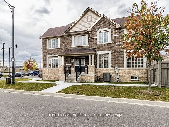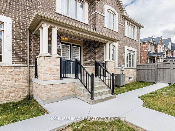 Beautiful 2 Story Freehold Bright Corner Townhouse in Brampton's Prestige neighborhood. Rare Elevation with 4 Bedrooms + Loft makes it feels like a Detached home. Corner Unit So Lots of Natural light and generous Living space! Double Door Entry! Freshly painted! Hardwood Floors! Open Concept Design! 9' ceilings on the main floor with a spacious Living, Family and dining room for entertaining. Executive kitchen layout upgraded with quartz countertops, extended with cabinetry and upgraded tiles ,stainless steel appliances, custom backsplash, spacious eating area with walk out wooden deck. Wood staircase with metal picket railing, gas fireplace in Family Room. Extended driveway with concrete all the way through to backyard. Main floor laundry access from the garage. Master bedroom has generous size walk-in closet. 2 minute walk to parks and schools. Central location close to Schools, Parks, HWY, Bus route, Grocery Stores, Shops and much more!