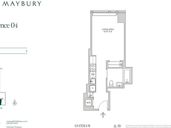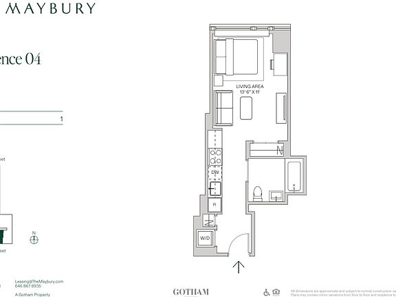 This distinct and intelligent studio is thoughtfully designed with high-end finishes that immediately immerse you in luxury and style. The gourmet kitchen is fully equipped with quartz counter-tops, beveled and polished slate subway tiling, white lacquer and ash grain cabinetry, top-of-the-line appliances and ample storage. For your additional convenience, this home is complete with an in-unit washer and dryer. This line is perfectly framed by an over-sized window that is complimented by additional sound proofing. The luxurious bathroom is outfitted with a gorgeous mosaic tile, fluted porcelain accent wall and an abundance of storage. At The Maybury, enjoy over 20,000 square feet of inspired indoor and outdoor amenities paired with incomparable lifestyle services by Gotham Living. Building Amenities: 24-hour Attended Lobby Gotham Living: Dedicated Concierge, Lifestyle Services, Curated Events & Exclusive GothamCard Benefits 46th Floor Rooftop Sky Lounge with Wet Bar 46th Floor Sundeck with Landscaped Lounge Area & Outdoor Shower 8th Floor Outdoor Terrace with BBQs, Landscaped Seating Areas, & Outdoor TV 8th Floor Resident Lounge & Co-working Space with Conference Rooms, Phone Booth, & Work from Home Pods State-of-the-art Fitness Club with Yoga Studio & Outdoor Terrace 4th Floor Resident Lounge & Co-working Space Package Room with Cold Storage Resident & Bicycle Storage Common Laundry Room Pet Spa REQUIRED FEES Application Fee: $20 per person (non-refundable) Lease Signing: First months rent and one months security deposit due upon application approval Moving Fees: None Broker Fee: None Monthly Fees Utilities: Tenants are responsible for electricity, cable, and internet (based on usage) Included: Gas, heat, and hot water OPTIONAL Monthly Add-Ons Amenity Fee: $80/month (Includes access to the Rooftop Lounge, Rooftop Terrace, and Fitness Club) Extra Storage: $200/month Bike Storage: No additional fee Pet Policy: Pets are welcome no additional pet fee