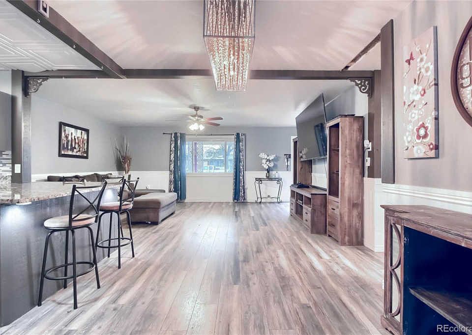Great updated ranch brick home! Do not look any further, this home has it all just 30 minutes from Denver!!As you enter, you will see an open space concept. This home has new floors in the main level, two bedrooms have the original hardwood floors and new paint throughout. The kitchen has the space to prepare your favorite dishes and entertain friends and family! The kitchen also features granite countertops and new stainless steel appliances. There are plenty of cabinets and an additional area to use as a pantry that needs little TLC. The house comes with a flex space that can be used as an office, gym, or for your kiddos study room. As if that was not enough, there is a mother-in law suite in the basement. This suite has two non conforming bedrooms, one bathroom with a jacuzzi, kitchen and a laundry room. This basement was rented for $1200 a month, so it can help you to pay your mortgage. The house also has a spacious patio with one car garage and an area to entertain your friends and family. The driveway can fit up to four cars!! As far as heating, you have two options: there is a furnace in the basement and coil heating system in the main level. Come and see for yourself, this home will not disappoint!