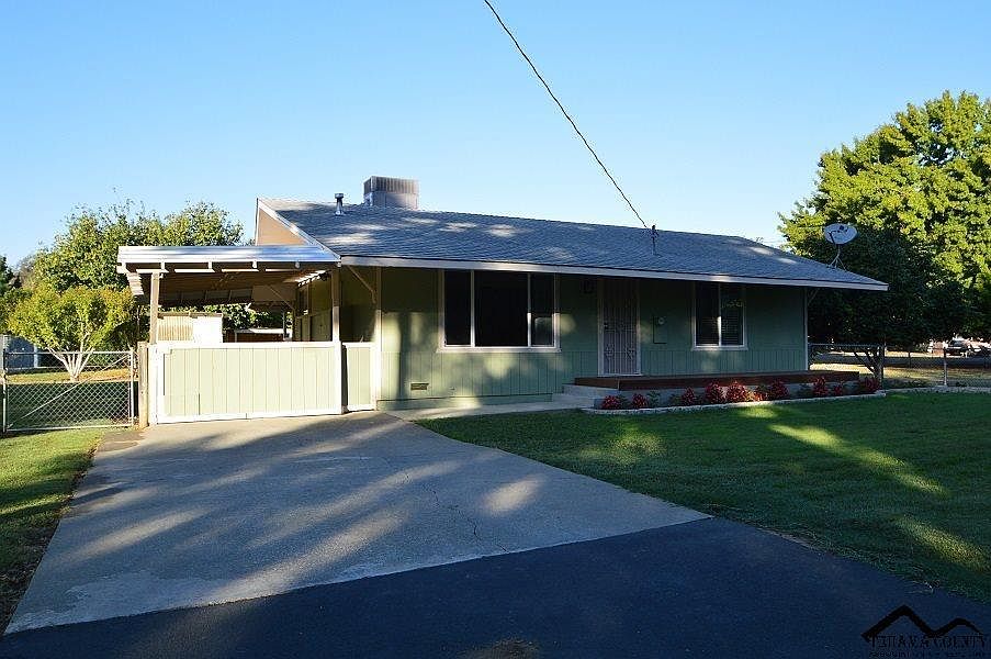 Large corner, over 1/2 acre. County home that is neat and tidy 2 bedroom, 1 bath home with a cozy breakfast nook off the kitchen, new windows and paint. Central heat/air and ceiling fans. Covered patio and carport with storage. Outdoors you will find a potting shed and storage buildings. This is a gardeners dream with some of the best soil around. There is lots of space for the garden and a shop. Located in the quiet community of Tehama, just a short drive to Chico or Red Bluff.