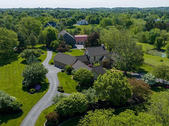 Spectacular eight-acre property on two parcels in the sought-after community of Stonehenge. Enjoy this secluded setting right in the heart of Manheim Township, yet you’re so close to local amenities, shopping, highways, airports, and more. The sprawling home originally built in 1852 with additions made in 1988 sits on six acres offering a tennis court, large barn, and a smaller stall barn. Horses are welcome! The barn area opens to a tranquil pasture with a pond and a meandering stream. The expansive grounds include lush landscaping, mature trees, a boxwood garden, a standalone fountain with a fish pond, and a decorative stone wall in the back of the home. Another two plus acre parcel sits on the other side of the pasture and stream. Moving to the main house, you’ll love the privacy of the primary suite area added to one side of the house with access to an exterior courtyard ideal for relaxing on warm sunny days. Besides the primary bedroom and attached bath, this addition to the original house includes an office, the laundry room, powder room, and bonus room upstairs that can be used for extra storage space. The primary suite area is connected to the main part of the house through a bright sunroom. Off the kitchen is a screened in porch that takes in the scenery of the yard and barn area. Two bedrooms and two full baths are hosted on the second level of the home. The main level features a living room and family room connected by a wet bar. The family room includes an eye-catching, large brick gas fireplace. Both the living room and family room have a wall of windows to enjoy the views of the surrounding landscape. A circular driveway and oversized three-car garage round out the grounds. The driveway also conveniently extends to the barns. With a spectacular setting, you won’t want to miss this peaceful, one-of-kind property. It’s a dream spot. Call today for a private tour.