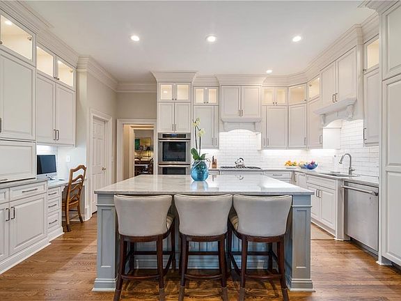 - Kitchen Features: Breakfast Bar, Eat-in Kitchen, View to Family Room, Stone Counters, Second Kitchen, Kitchen Island, Pantry Walk-In, Cabinets White