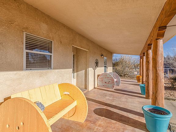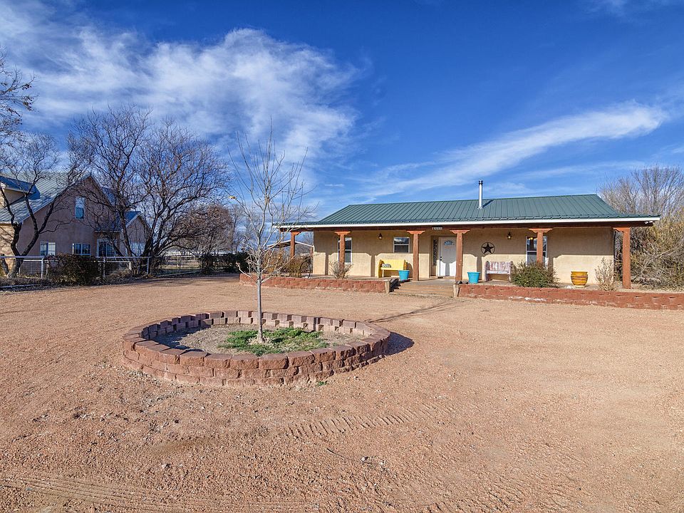 Gorgeous home on .82 acres in fabulous Bosque Farms! Features 2,267 sq. ft., 3 bedrooms & 2 full baths. Gorgeous Great Room (35x16) w/skylights & wood-burning stove for cozy nights. Country kitchen (16x16) is perfect for cooking gourmet meals. Very private location on a quiet cul-de-sac. Yard has grass w/underground sprinkler system. Covered patios on both front and back of home. Back yard access & plenty of space for parking all your toys w/RV hookup. Completely fenced with 2 gates & auto opener. Metal roof. City water & irrigation well. Easy access to I-25 & minutes to Albuquerque!