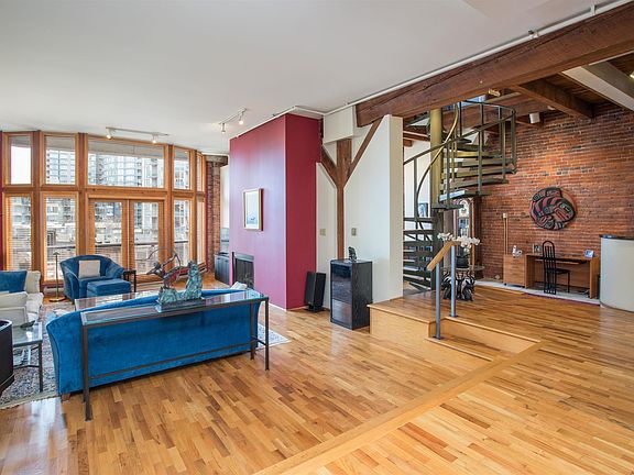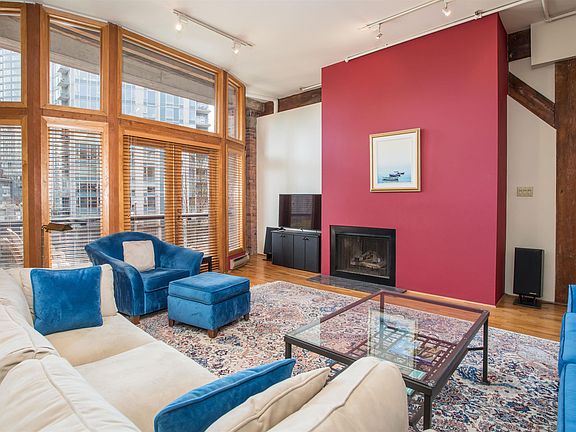Welcome to this spacious 2,532 sf loft in Vancouver's original warehouse conversion. This substantial home was created by combining 2 suites. Soaring 12 ft plus ceilings, over-height windows & generously sized rooms create an exceptional space. The layout features 2 large bedrooms each w/ an ensuite bath as well as a powder rm. The great room is anchored by a gas f/p & extended by a wet bar area. Rich in character w/ its original brick walls, exposed wood ceilings, & post & beam construction - an ideal space for grand entertaining. A spiral staircase serves as a design statement while 3 open balconies are featured w/ wood casement French doors. 2 parking spaces & 2 XL storage lockers are provided. Located within steps from some of the city's finest dining establishments and entertainment.