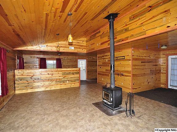 Decent condition, structurally sound, recently built log cabin home on very usable nearly 4 flat acre lot. Close to Lake Guntersville, only 4 miles from Lake Guntersville State Park. Excellent opportunity for rural living, hunting or vacation lodge. Third bedroom does not have closet, could also be used as office space. House is sold as-is, needs some TLC and finish work.