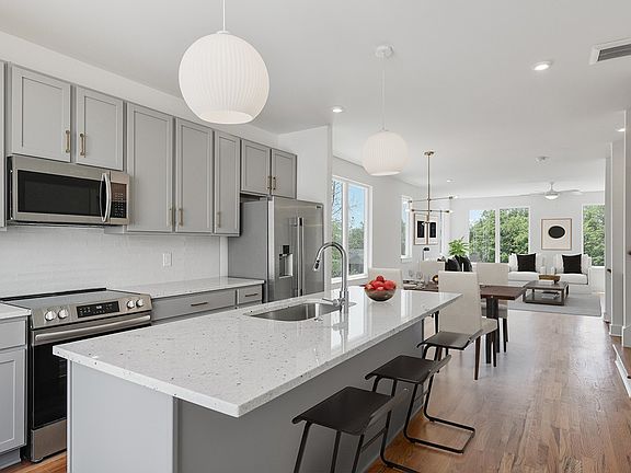 CityBluffs : a mixed use development from Core Development & Paragon Group just across the Cumberland River offering quick access to North & East Nashville, The Nations and Mid-town Nashville. This 4BR unit is eligible for a non owner occupied short term rental permit (NOOSTR) and includes a 2 car garage, all appliances, upgraded backsplash, minibar in living area and a fully finished rooftop amenities offering panoramic views and a rooftop kitchenette.