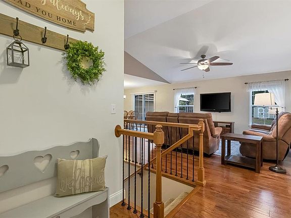 PRICE DROP, PRICE DROP! A SPOTLESS HOME. The floor plan is great & the FENG SHUI that is JUST RIGHT. Much more roomy than it measures. Located in an established subdivision(huge lake) w/ a very nice backyard. Superb Interior Finish features: engineered hardwood flrs in great rm, dining, kitchen, main hall & foyer, lux vinyl tile in baths & ceramic tile in MF laundry, great light fixtures, vaulted ceilings, loads of kitchen cabinets w/ crown molding, island w/ breakfast bar, pantry, stainless app's, soap stone double sink & stone backsplash, classy handrail system to LL, primary bed suite w/ walk-in closet, full bth w/ heated flrs & glass shower door, carpet in beds & more. The backyard makes the perfect entertainment setting w/ a beautiful pergola on a spacious patio, landscaping, rock garden, rain barrels, 12x10 matching lawn shed & wood fence! Additionally the partially finished walk-out basement w/ lg Rec/Family Area w/ barn doors, storage rm, shelving & bth rough-in cap it all off.