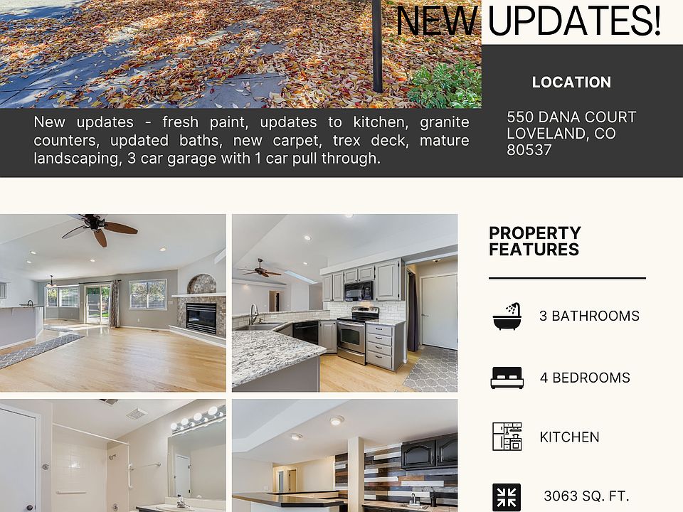 This spacious home features many updates including fresh paint, updates to kitchen, granite counters, updated baths, new carpet. Home features trex deck, mature landscaping, 3 car garage with 1 car pull through.