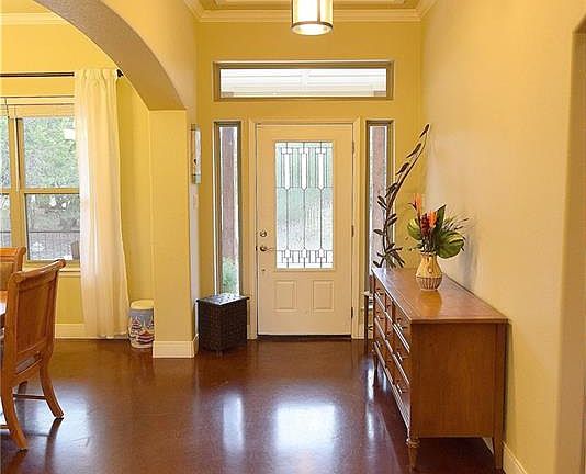 Top of the line luxury, elegance and privacy - this exceptional 6 bedroom, 4 bathroom brick home with 5 acres is immaculate. An alluring front-porch steals your attention, right away. Upon entering the home, the exceptional open floor plan is simply stunning. The exquisite archway leading into the dining room sets the tone for the amount of character in this home. The decorative chandelier adds a touch of elegance to the picturesque dining area. Adjacent, you will find the gorgeous living room. Impeccable crown molding and double tray ceilings draw you into this space. Recessed lighting, a lighted ceiling fan, a wall of windows and access to the backyard is an entertainers dream. Gorgeous stained concrete floors carry you throughout. Footsteps away, the upscale kitchen is awaiting its new chef. This fully equipped kitchen has custom built cabinets, high-end stainless steel appliances, mint condition granite counter-tops, a large walk in pantry and a convenient breakfast bar.