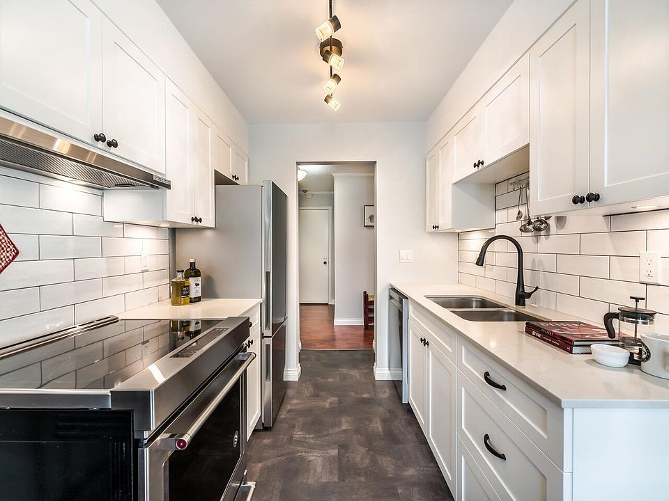 MOUNT PLEASANT BEAUTY! This southeast facing corner suite is bright, quiet and spacious. Updated with brand new contemporary kitchen (2020) with Fisher Paykel fridge, Kitchenaid Dishwasher and sleek Induction Oven. New windows and window coverings (2020), new gas fireplace with thermostat (2022), and pretty laminate flooring throughout. A wonderful location between Main and Fraser - a short stroll to Main Street, Mount Pleasant Elementary, Mount Pleasant Community Centre and Library, and Olympic Village. Well maintained Landmark building with elevator upgrade completed in 2020. Includes Parking and Storage, Cats allowed - sorry, no dogs.