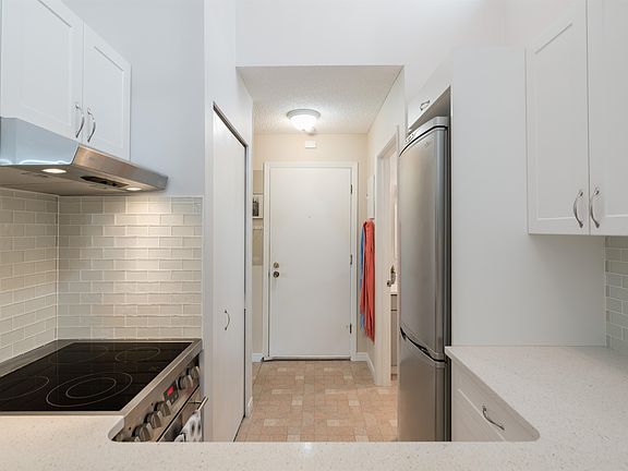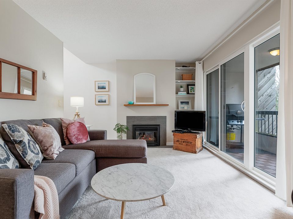 Welcome to Landmark Gardens located in Mount Pleasant! This ONE bedroom unit has a beautifully updated kitchen with stainless steel appliances with an dining area adjacent. A living room with a gas fuelled fireplace and views of the city. Sliding glass doors open up to your balcony to enjoy summer barbecuing or peaceful reading. The bedroom features glass wall partition and two closets. One parking and one storage. Excellent location close to shops, restaurants, transportation and downtown!