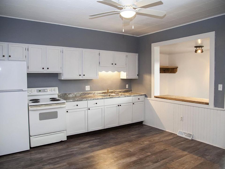 MOVE IN READY! 3 Bedroom home with LARGE yard. MANY updates including; flooring on main level, refrigerator, cabinets in kitchen, bathroom vanity, light fixtures, rustic breakfast counter, entry coat rack and much more. Newer windows and AC, 200 amp electric and well maintained back deck. Plenty of room for entertaining inside or out. Off street parking in a quiet neighborhood near campus. Enjoy lots of walking opportunities. There is even a fenced area for your furry friends.