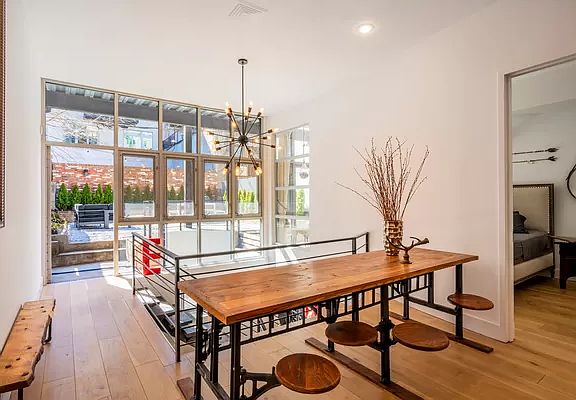 A truly grand loft duplex on Grand Street in the heart of Williamsburg Brooklyn. Enter into the enormous loft living room spanning over 40 feet in length with 10ft ceilings and floor-to-ceiling windows overlooking your very own enormous private backyard. The outdoor space spans over 800 square feet landscaped with gravel and planted with Arborvitae bushes. This serene residence faces south and gets incredible sunshine all day long. Wide plank white oak hardwood floors throughout warm the space. Chef's kitchen with stainless-steel appliances, hardwood cabinets and an 8ft dining island featuring a custom cast iron and Mason jar light fixture. The master bedroom suite is the size of most living rooms with floor-to-ceiling windows and double doors that open to the outdoor space. Sizable en-suite master bathroom with penny round tiled floors, pedestal sink and a Jacuzzi soaking tub with separate shower; all encased in white marble. At the far end of the living room an iron railing surrounds the double height ceilings with a large floating staircase leading to the lower level. The floor-to-ceiling windows extend down letting in the sunshine. This incredible open plan loft space is over 27 x 21 feet in size and has a half bath and separate laundry room. Central heating and cooling throughout. Circa 1920's stone and masonry building that was restored and transformed into a boutique six apartment condominium. Centrally located near the Lorimer L Train subway stop.