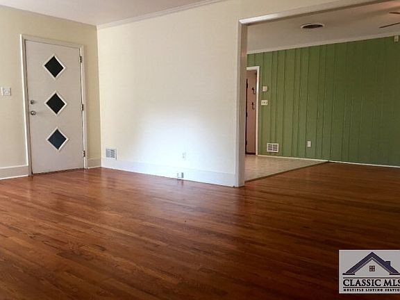 This delightful 3 bedroom 2 full bath painted brick ranch has it all with great location on the Eastside of Athens. The house is in walking distance to the new UGA Vet School, Publix and lots of yummy restaurants. The house sits on a large lot with mature hardwood trees offering great shade and keeping the house cooler in the summer. The park like backyard is completely fenced and has a large green house for growing your own vegetables. Inside this vintage beauty features an open floor plan with large windows letting in tons of natural light, original hardwood floors throughout, and a large eat-in kitchen. All three bedrooms are good size and the master offers en suite bath. The garage has been enclosed and is a great flex space for a yoga studio, man cave or extra living room.