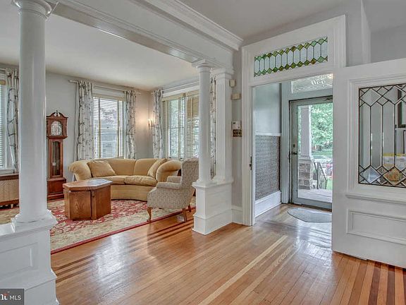 PROPERTY IS CURRENTLY UNDER CONTRACT. This beautiful American Foursquare is situated on a double lot in the historic district of Norristown. It hosts seven bedroom and a full bathroom on each of its three floors. Even with all the modern updates, it still maintains plenty of original charm. As you walk to the front door you will see an expansive front porch with a swing, perfect for a spot to relax and get fresh air while waiving to neighbors as they pass. The front entry has two original doors with remarkable stained glass and leads you into a grand foyer. To your left you will find a receiving room (currently being used as a playroom. To the right you will find a handcrafted archway that leads you into the bright and airy living room complete with wood burning fireplace. Past the French doors you will find a large dining room with bay windows. From there you can either move towards the cozy family room or into the large kitchen that is complete with a butlers pantry and access to the back staircase leading to the second floor. Rounding out the first floor is a remolded full bathroom. As you walk up the main staircase you will see more original stain glass windows. The second floor has four large bedroom, another full bathroom and a kitchenette that could easily be turned into a laundry room. On the third and final floor is another remolded bathroom with heated floors on a programmable thermostat and jacuzzi tub. Also on the third floor is an office space as well as the fifth bedroom with beautiful built-ins and carpeted storage (or secret play space for your inner child). If you have a large bedroom set, don't worry, it will fit in this expansive master with room to do cartwheels. The master also features two large closets with additional storage behind the closets. The final bedroom is off the master and is currently being used as a nursery. The fenced in back yard has a Granny Smith apple tree, cherry tree and blueberry bushes to help keep your grocery bill low! Finally, a two car, detached garage with electrical service allows for off- street parking. Current owners have updated electric, plumbing, installed a French drain and replaced all the windows on the second and third floors as well as replaced the roof on the garage in preparation for solar panels. The hard work is done, just move in! Close proximity to SEPTA, major highways, walking trails and shopping!