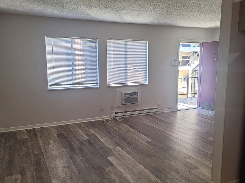 Nice bright one-bedroom with window air and baseboard heat. Water is included in the rent. No pets. The owner pays for water and the Renter pays for electricity. If you break your lease you pay up (3) months of rent to leave or you bring us a qualified tenant. There is open parking at this complex. Authorization must first be given before a pet moves in. You can add a roommate only if that person fills out an application and gets qualified by our office. Only the person/s on the lease is to live in the unit .