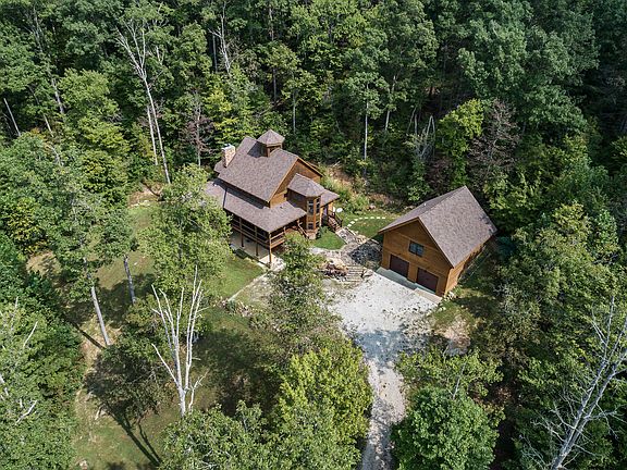 Stunning Timber-frame constructed home on Nolin Lake with over 33 acres of land and private boat dock custom built in 2010. Owner originally set up this property to develop a high-end gated neighborhood of 21 building sites but has converted remaining property back to farmland and will sell 33 acres (18 original lots) as one package along with home. New owners could capitalize on original development plan or enjoy this very unique and private oasis for themselves. This luxurious home was designed for entertaining. Enter to breathtaking timber-frame woodwork and a two-story cupola above the Great Room. Stunning hardwood flooring throughout the first and second level, a stone gas fireplace centers the great room and flows to the open plan kitchen and dining room, showcasing a large granite counter island bar, farm sink, custom cabinetry and custom finishes throughout. Step outside to the IPE, exotic hardwood constructed deck to enjoy nearly 750 square feet of covered porch with built-in outdoor stone fireplace and grill. There is additional finished square footage in the 2nd floor of the 28 x 30 2 ½ car garage with a full bathroom, bunkbed room for the kids and another bedroom set up in the loft. Currently the large finished room over the garage is used for a hobby room but has endless possibilities the garage could easily be set up as a second home. Home and garage are being sold as a turn key investment or vacation home fully furnished with all appliances, dishes, linens, TV's, pool table, arcade game machine, ping pong table and even a golf cart to take you to your own private boat slip on the water in a secluded cove in Long Fall creek. The boat slip to transfer per COE approval. Owner is a licensed real-estate agent.