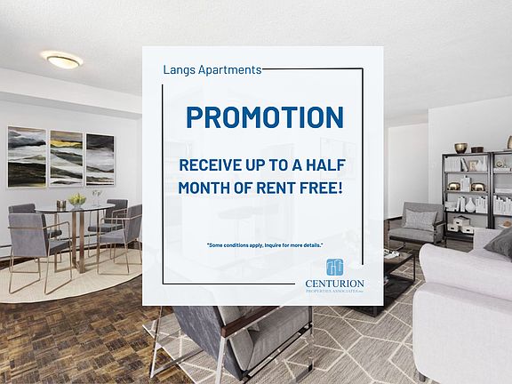 AboutWelcome to Langs Apartments, located in a delightful neighborhood in Gloucester, Ottawa. Surrounded by lush, tree-lined landscapes and beautifully maintained grounds, this property is conveniently situated next to Montfort Hospital. You'll find a variety of local shopping, dining, parks, and schools just moments away, along with easy access to public transit and major highways. Experience the perfect blend of comfort and convenience at Langs Apartments!PROMOTION: Receive up to a half month of rent free! *Some conditions apply, please inquire for more details.*Looking for a future move-in date? Give us a call today to speak with one of our Customer Care Representatives to find out more!Langs Apartments est situe dans un quartier charmant avec des terrains tres arbores et magnifiquement amenages, a cote de l'hopital Montfort. L'immeuble se trouve a proximite des commerces, des restaurants, des parcs et des ecoles; mais beneficie aussi d'un acces facile aux transports en commun et aux principales autoroutes.PROMOTION: Recevez jusqu'a un demi mois de loyer GRATUIT! *Certaines conditions s'appliquent, veuillez nous contacter pour plus de details.*Vous recherchez une date d'emmenagement future? Appelez-nous des aujourd'hui pour parler a l'un de nos representants du service a la clientele et en savoir plus.Close to parks, schools, and restaurants/ Proche des parcs, des ecoles et des restaurantsEasy access to public transit and major highways/ Acces facile aux transports en commun et aux grands axes routiersFees:/ Frais*Hydro not included/ electricite non inclus*Outdoor Parking: $85/month/ Stationnement exterieur: $85/mois*Underground Parking: $110-$120/month *Inquire for more details/ Stationnement souterrain: a partir de $110/ mois "contactez nous pour plus de details"*Locker: $25/month/ Casier de rangement : $25/moisDon't miss out on being one of our valued residents. Contact our Customer Care Centre to find out more details and schedule a viewing today! / Nous serions heureux de vous compter parmi l'un de nos precieux residents. Contactez notre centre de service a la clientele pour en savoir plus et planifier une visite des aujourd'hui !Suite images shown represent standard unit finishes, which may differ between units. Suite layout varies./ Les images presentees representent les finitions standard des appartements et peuvent differer d'un a l'autre. La disposition des pieces peuvent egalement varier.Utilities IncludedHeatWater