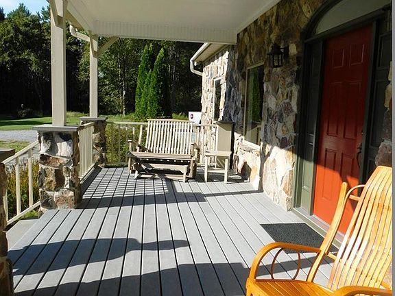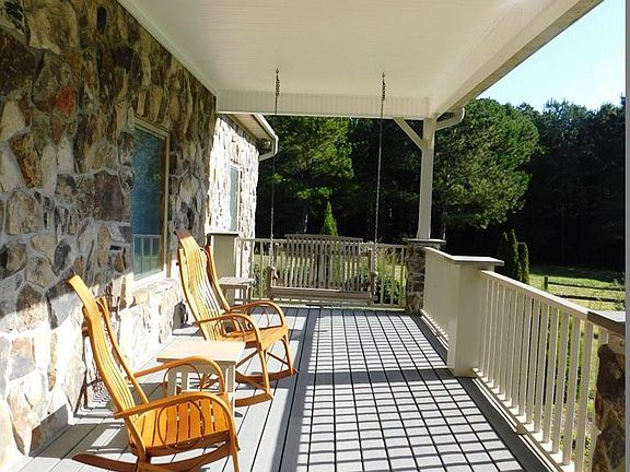 This 4 bedroom, 3.5 bath stone home sits on 10.95 acres. The great room has a wall of custom built cabinetry. The eat in kitchen includes a center island, breakfast bar & all appliances. The rec room has custom made paneling & pool table. The 1st floor master bedroom includes a walk in closet and master bath. There is a 2nd bedroom on the first floor & a full bath. There are 2 bedrooms upstairs & a full bath. There are 2 rooms upstairs that can be used as office space, playroom or climate controlled storage. There is a screened in porch & a covered breezeway that leads to the 3 car garage.