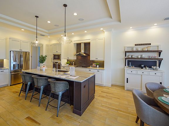 Furnished Model and Sales Center Open Through December 31, 2020 .The open and contemporary design of the Antigua is like a breath of fresh air. The 90-degree glass doors slide away to bring the outdoors in, and offer a beautiful stage for family life and for entertaining friends. The expansive great room-kitchen-casual dining room combination offers lovely places to gather and spend time together. And, like many of our custom homes, your luxurious master suite gives you the quiet, private space you may be craving at the end of a busy day