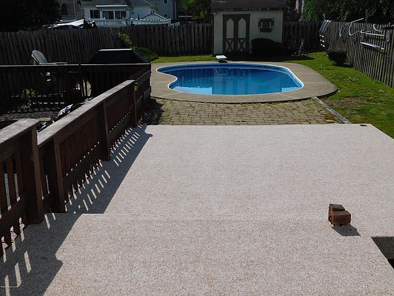 Enjoy the in ground pool, deck, fenced yard and central air on these warm days. This home can be used as a 3 BR or 2BR with bonus room. Off street parking, porch and shed.