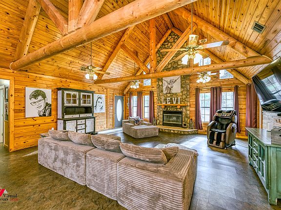 Tucked away on 3.93 acres in the North DeSoto School District, this one-of-a-kind 3 bedroom, 2 bath log cabin offers privacy, character, and impressive amenities from the moment you arrive. A unique, eye-catching bridge leads you from Middleton Road onto the property, setting the tone for what’s to come.