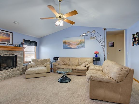 Beautifully well maintained ranch home with full basement. Foyer opens to vaulted family room with fireplace. The formal dining room has access to a large deck and brick patio with built in fireplace. Master bedroom is spacious and includes a walk-in closet and full bath. There are two other spacious bedrooms and a full bath. The kitchen has a breakfast area with pantry. Laundry room is located on the main floor. The full basement has an office space and is ready for your finishing touches. The roof is new 2021, water heater 2017, home has a central humidifier and water softener.