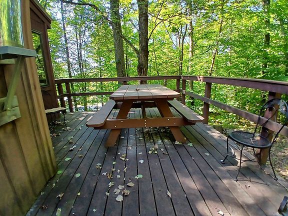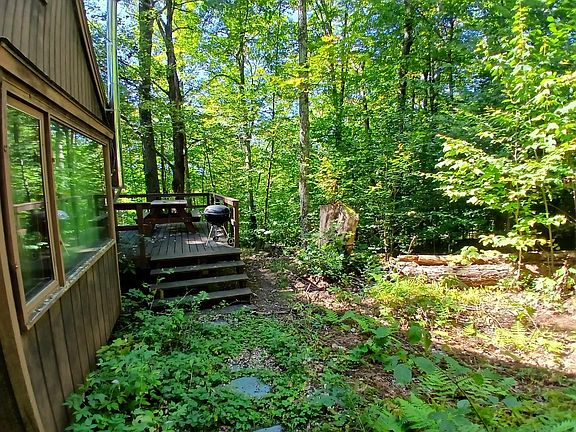 This delightful chalet style home is situated in Rochester, VT where trails and nature surround you. Sited on over an acre of woods the layout makes you feel like you are in a treehouse with cathedral ceilings and ample windows. The main level hosts a bedroom and bathroom, open concept dining and living area, laundry nook, and a nice 13 x 15 walk-out deck for summer relaxation. Next door a sauna is waiting for you as you return from skiing in Killington, just over a half hour away. On the heels of the Rochester Gap and the Riley Bostick Wildlife Management Area offering 350 acres to explore. Whether you are looking for a summer Vermont retreat or a year-round property this oasis is waiting for you!