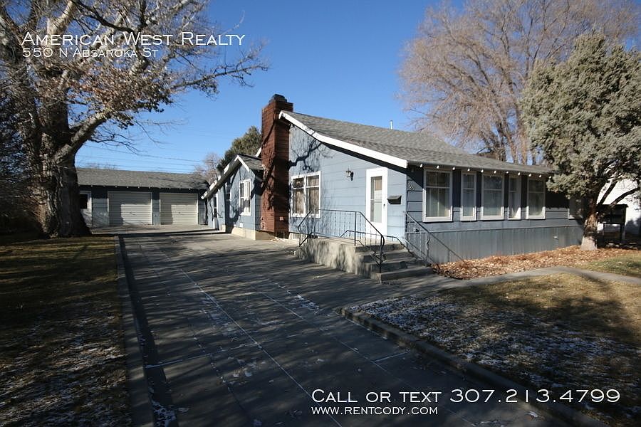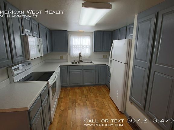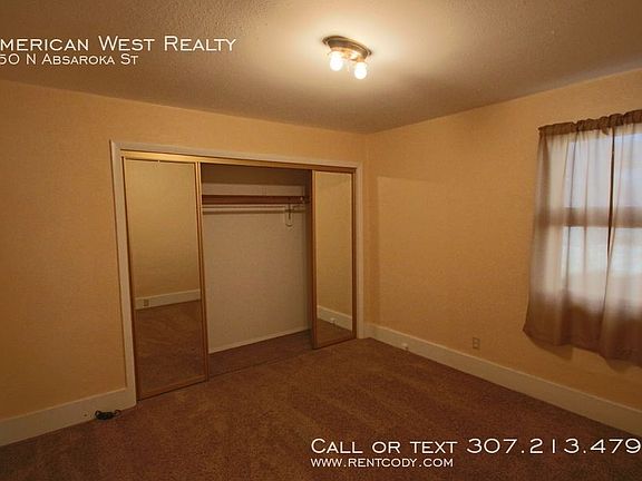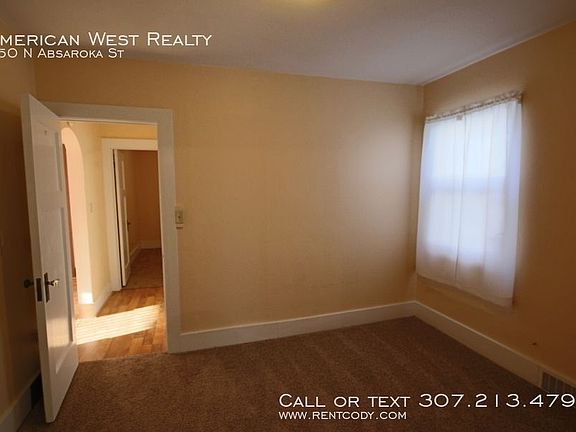 Large single-family home located a block from Northwest Community College and a few blocks from downtown Powell. The home has a detached 2.5 car garage with two garage doors, a walk-through door, lots of room for a work space or storage. The long driveway has space for vehicles, RV, or trailer. The home consists of one large bedroom and two bonus rooms that would make nice bedrooms or office space. Lots of bright windows, hardwood flooring, and fresh paint throughout. The main floor consists of a large bedroom and two smaller rooms that could be bedrooms or office space. The living room has new hardwood floors and a brick fireplace with blower capable of heating the main area. In the kitchen you will find room for a breakfast nook, nicely painted cabinets, and newer fridge, stove, microwave, and dishwasher. Lots of storage and counter space! Laundry is located near the back entrance. In the basement is a space ideal for a master bedroom, or you can use it as a second living room. A second smaller room could be used for hobby room, storage, or even a walk-in closet. A 3/4 bath is located in the hall. A single small dog may be allowed for additional rent. Contact American West Realty for more information or to apply! NOTE: Owner is a licensed REALTOR in the State of Wyoming. _____________________ Information presented is deemed reliable, but is not warranted. Interested parties are responsible for conducting their own inspection to confirm the accuracy, completeness, currency, and status of all information before renting any property. _____________________ General requirements: All occupants 18+ must complete an application $30 application fee per person Submit a government-issued picture ID Prove combined income of 3x monthly rent To see our most updated list of rentals or learn more about our screening process, visit the American West Realty and Management website. _____________________ INVESTORS: are you looking for professional property management or an agent that can help you sell or expand your investment portfolio? Contact American West Realty and Management today to learn about our services! Air Conditioning Window Units Flooring Hardwood Garage Heat Fireplace Or Wood Stove Heat Forced Air Kitchen Dishwasher Kitchen Garbage Disposal Kitchen Microwave Kitchen Pantry Kitchen Refrigerator Kitchen Stove / Oven Parking Rv Or Trailer Shop Or Work Space Sprinklers Manual Utility City Of Powell Utility Mon Dak Gas Washer/Dryer In Unit