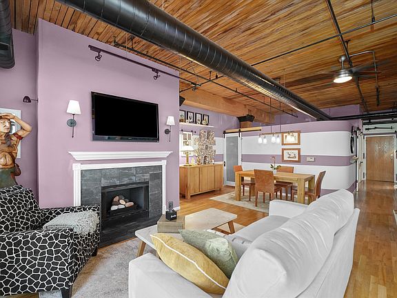 Live the Loft Life in the Heart of River North! Welcome to the highly desirable Riverbank Lofts in the vibrant River North/Kingsbury Park area, featuring exposed brick walls and soaring 12-foot timber ceilings. This oversized 1 bed + den offers the perfect open-concept layout, with potential to convert the den into a second bedroom. The kitchen boasts abundant cabinetry, a massive island with seating, and an open view into the living room. The extra-wide living space provides access to a private balcony and easily accommodates a full dining table-ideal for entertaining! The spacious bedroom includes a custom walk-in closet, while the large updated bathroom features dual sinks. A 300 sq. ft. private storage room-directly across the hall-is included in the price, offering endless possibilities. Garage parking may be available for rent within the building, with additional options nearby. Riverbank Lofts offers 24/7 door staff, an on-site dry cleaner, exercise room, art gallery lobby, professional management, and a rooftop BBQ deck with panoramic city views plus a private riverwalk. Enjoy everything River North has to offer-just steps to parks, East Bank Club, river taxi, Brown Line, top restaurants, and shopping. Take a 3D Tour-click the 3D button to explore!