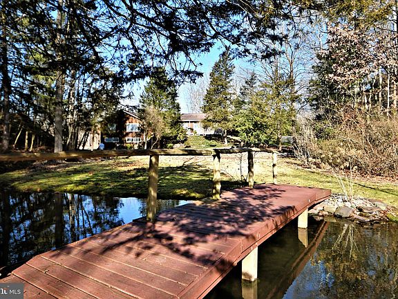 Discover this unique, one of a kind 5 bedroom home with WORKSHOP, in a picturesque setting with Private LAKE, scenic PATHS, BRIDGE & BOATHOUSE, all nestled into the woods & surrounded by 30 foot rocky CLIFFS. This distinctive home boasts so many builder designed custom features with attention to every detail, maximizing the ENERGY EFFICIENCY and making sure that the structure is safe and sound. The Spring-fed LAKE is stocked with FISH and you can enjoy fishing from the DOCK or from the 2 person fiberglass BOAT with electric motor that is waiting for you in the BOATHOUSE. Also to be enjoyed outside are the DECKS, various GARDENS, BRIDGE, landscaping and hardscaping throughout the property. To make maintenance easy, the vegetable garden and blueberry house are with a IRRIGATED w/a programmable, computer controlled system. The 1400 sq ft HEATED WORKSHOP is a contractor's dream. Room for work and plenty of storage including a 20ft lumber rack, loft storage and a supplies room. There are 9 individually controlled ceiling fans and lights on separate switches to maximize energy efficiency. The shop has a 100 amp sub panel with access to another sub panel above if needed. There are several 220 volt outlets and ample 120 volt outlets as well. The house is so spacious with 3 bedrooms on the lower level, and 2 bedrooms on the upper level, with also a hobby room and gym. Also, to add to the safety and security of this home it is equipped with an extensive, hard-wired SECURITY SYSTEM that includes glass break detectors and sensors on all first floor windows, but needs a fuse to be operational. In addition to the 3 bedrooms on the entry level there is a remodeled powder room, an additional bathroom rough-in, a furnace room which houses the utilites which are mostly all new within the past 3 years. The dates are as follows: the well pump and tank (2021), Hot water heater (2023), Main House A/C (2022), Also there is a Water Softener & Whole house filtration system. The heat is oil with hot water baseboards, separated into 5 ZONES, As you venture farther into the entry level you have a room with insulated walls that was built as a potential WINE CELLAR. There is also an office area. Upstairs there is a practically BRAND NEW KITCHEN with refaced cabinets, new soft close drawers, added custom cabinets and new GRANITE counter tops. Two pendant lights have been added above the ISLAND and new under cabinet lighting was added as well. Also on this level are 2 bedrooms, a laundry room and a living room / dining room combination with recessed lighting, ceiling fan and sliding glass doors to deck. There is a BUTLER'S PANTRY with wine frig, sink & built in shelving. An office is conveniently located adjacent to this area. Down the hall is a full bath with skylights, shower / tub combo, double sinks, and swan stone sink. Another room which is considered the HOBBY room has 2 sky lights and a 100 amp sub-panel. A GYM / RECREATION room has been added which has sky lights, track lighting, a 50 amp SPA PANEL, reinforced flooring which will hold 250 lbs/sq ft load of water if you wanted to add a hot tub or indoor endless pool. There is a mechanical room to house the pump with a 50 amp sub panel. Home has all Pella windows and doors with built in mini blinds. All new flooring and fresh paint through out the home. The garage is over 1000 sq ft with 2x8 insulated walls. Back outside there are 2 decks built with Trex to minimize maintenance. The north deck is accessible from the living room and there is a large very private south deck perfect for entertaining or just relaxing and enjoying the serenity of the lake. This home is an absolute haven for both tranquility and creativity in a hustle bustle area, close to shopping, restaurants, and easily accessible to main routes including 422. Home is in a FLOOD ZONE. CURRENT FLOOD INSURANCE IS TRANSFERABLE.