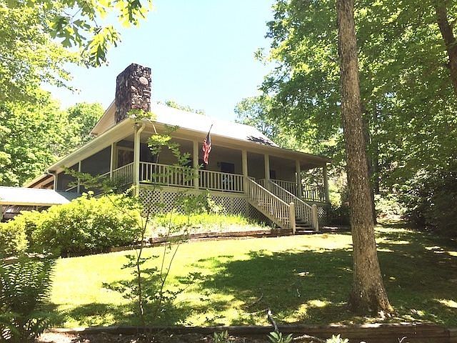 Secluded living and yet only 32 minutes from Duke or 30 min from Oconee Medical Center. The peacefulness at this home begins with an automatic calming sensation as you drive the slightly curvy path from the road to the house. The property is rich in landscaping including fig, peach, cherry, apricot, and apple trees. Assorted grape vines and blueberry bushes provide you with summer's bounty for your table. The 4.7 acres of trees and bushes surround the house in an attractive way to provide you the utmost in privacy. You can walk under the canopy of the trees and enjoy your own spring fed creek. (There is a cleared path to the left rear of the property that leads you to an old barn and the sound of rippling water along the spring fed creek.) The house has beautiful wood floors, exposed beams, wood ceilings, 2 fireplaces, large upgraded baths, granite countertops, new kitchen door fronts on the cabinets, stainless steel appliances, and an extra large sun room that overlooks the garden areas. Want a big, wide open porch to swing under and listen to the birds? It's there. Want a smaller screened porch for taking a summer nap? It's there. Want a patio to enjoy some sun rays? It's there. That's right: In addition to a large yard, there are 3 spaces for outdoor living. Main floor has 1136 square feet and includes the living room with a 2-story high ceiling, dining area, sun room, kitchen, bedroom, bath and laundry area. The upper level has 896 square feet and includes 2 more bedrooms and another bath. (1 BR is currently configured as a loft.) The 896 square foot basement is heated and cooled, but otherwise unfinished. There is an interior door leading to the basement plus a large door going from the basement to the covered carport area. It's a great location for doing home projects in a protected climate controlled area yet not worry about messing up any drywall or painted surfaces. Want more work space? There is a super large detached workshop/garage that is ready for any size home project. It is flanked by a carport and another roofed work space too. Great area to work on boats, park an RV, etc. In addition to this carport and space to use the workshop door as a garage entry for a car, there is also another 2-car carport next to the house. Yes - spaces for 4 vehicles to be under a roof. Like to fish? Fishing is great on Lake Becky. This property has an optional HOA choice that would allow you access to Lake Becky and the boat ramp. Currently, the HOA is $150 per year. If you are not a lake person, no worries -- and no HOA fee is due. It is a voluntary membership. Want to store yard tools or holiday items away from the workshop/garage space? In the far corner of the yard, there is a nice sized outbuilding for extra storage. You could be living here in 30 days or less. Come check it out and start packing!