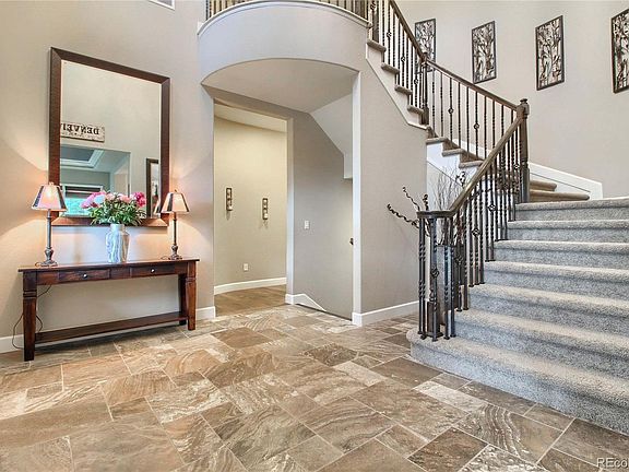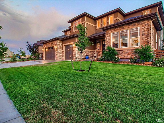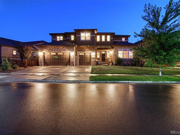 Stunning Harmon executive home situated on a premium lot in the sought-after Reserve of Colliers Hill. This home features endless upgrades throughout including both mountain & flatiron views. Over $150k in upgrades including engineered hardwood floors, premium carpet, coffered ceilings w/ crown molding, upgraded lighting, granite counters, glazed-stained custom cabinetry & extra wide 4ft custom stairway & hallways. Home cooks will love the gourmet kitchen boasting a featured center island, GE Profile SS appliances w/ SMART double ovens, gas stove w/ custom hood, large walk-in pantry & a tech center w/ built-in desks. The butler's prep area leads to the formal dining. Main floor hosts a large office. Escape to your master suite featuring private sitting area w/ double-sided gas fireplace, coffered ceilings, lg walk-in closet & 5-piece bath w/ double-head shower. The finished basement offers almost 2,000 sf of add'l entertaining space w/9' ceilings, a wetbar, 2 bedrooms, 3/4 bath & 3 lg storage rooms. Relax all year on your covered patio overlooking extensive professional landscaping or cozy up by the gas firepit with custom retaining wall & endless west-facing views. 2 furnaces, 2 AC units & 2 50-gal hot water heaters. No details has been overlooked & the finishes throughout have been meticulously chosen. Soaring Heights PreK - 8 & Erie HS. Book your showing for this premium home today!