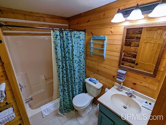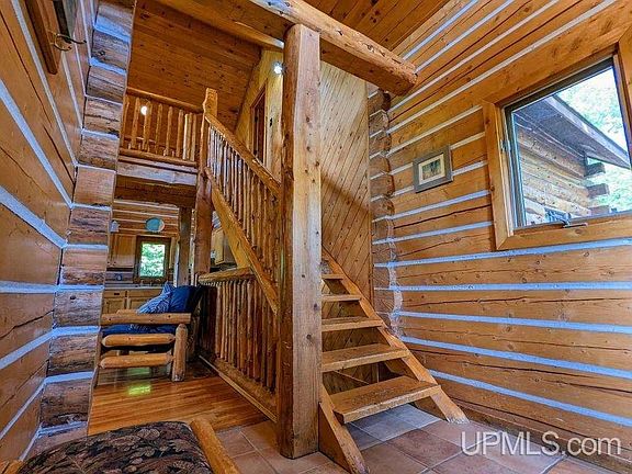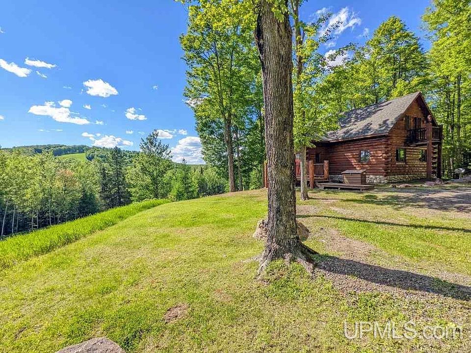 The northwoods log cabin you've always dreamed of'nestled atop a Maple clad ridge with beautiful long views over the rolling countryside surrounding Brule Mountain. From the moment you arrive up the winding driveway you'll appreciate the care given to keeping this retreat special. Enter the main floor into the great room that's shared by the kitchen and gathering area with its wall of windows looking to the west. Shining hardwood floors grace your steps and large timbers surround you with a deep warmth found only in a log cabin. The main floor features two bedrooms and a full bath with tiled floor as well as full width covered balcony that's perfect for gathering and grilling. Up the log banister steps to the second floor you're met with a choice'left across the cat-walk to sit and soak up the views and changing of the seasons or take a right into the vaulted ceiling master suite complete with gas fireplace and its own balcony. The walkout lower level hosts another large bedroom, full bath and spacious family room wrapped in a true knotty pine wall covering anchored by another fireplace and looking out over the same special view as seen from upstairs. Step out the door onto the covered patio to soak in the hot-tub after a wonderful day of adventuring, whether that's shushing the slopes, paddling the nearby lakes and rivers or just wandering the wilderness. Whether you're looking for your forever home, a personal retreat or a great Airbnb investment property, this log cabin checks a lot of boxes including availability of good internet! Located at the Ski Brule resort and close to most everything you need. Property comes completely furnished and ready for you to make some memories!